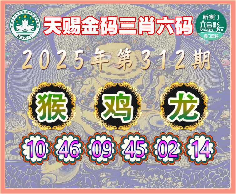 312期: 『天赐金码』 三肖六码【猴鸡龙】开:龙14准