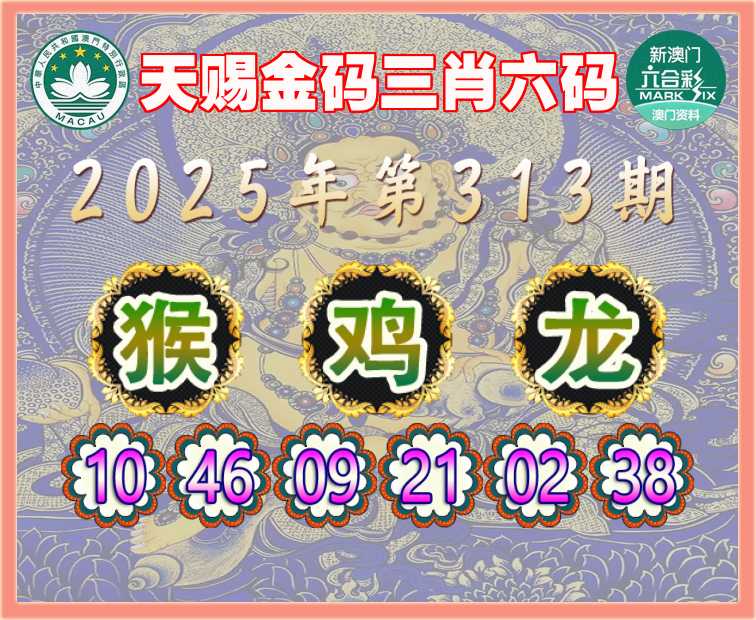313期: 『天赐金码』 三肖六码【猴鸡龙】开:龙38准