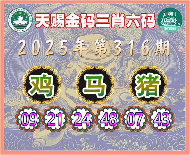 316期: 『天赐金码』 三肖六码【鸡马猪】开:马24准