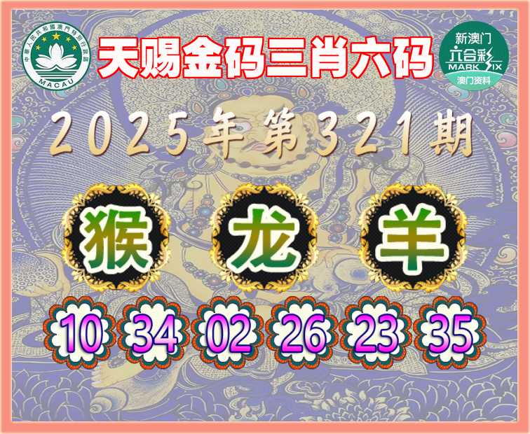 321期: 『天赐金码』 三肖六码【猴龙羊】开:羊23准