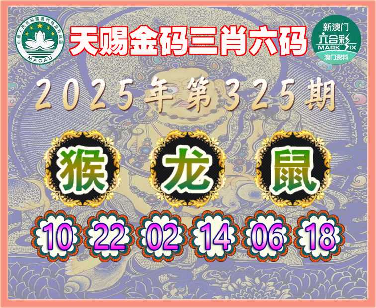 325期: 『天赐金码』 三肖六码【猴龙鼠】开:虎04错