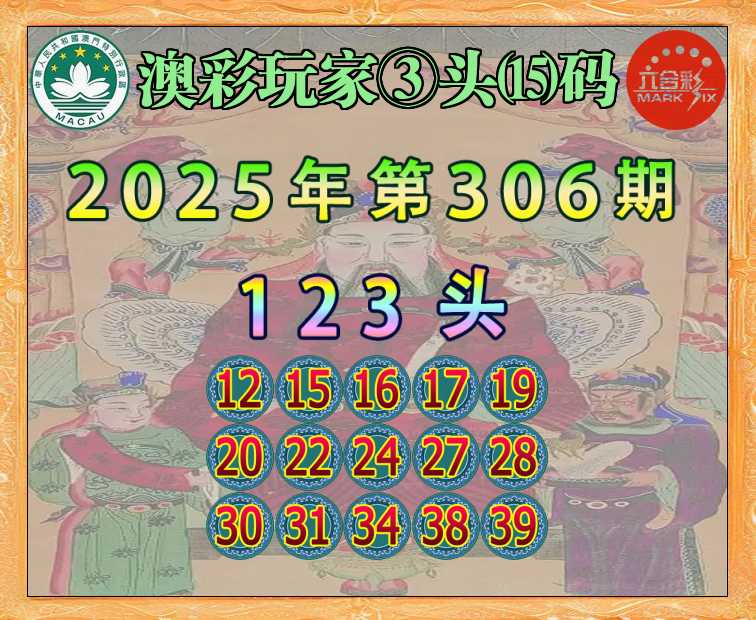 306期:〖澳彩玩家〗 ③头⒂码【123头】开:17准