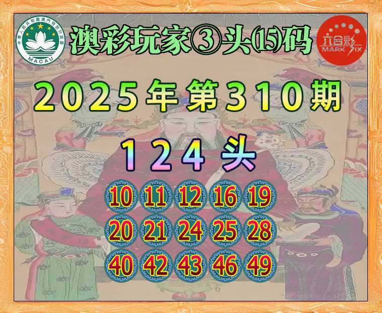 310期:〖澳彩玩家〗 ③头⒂码【124头】开:16准