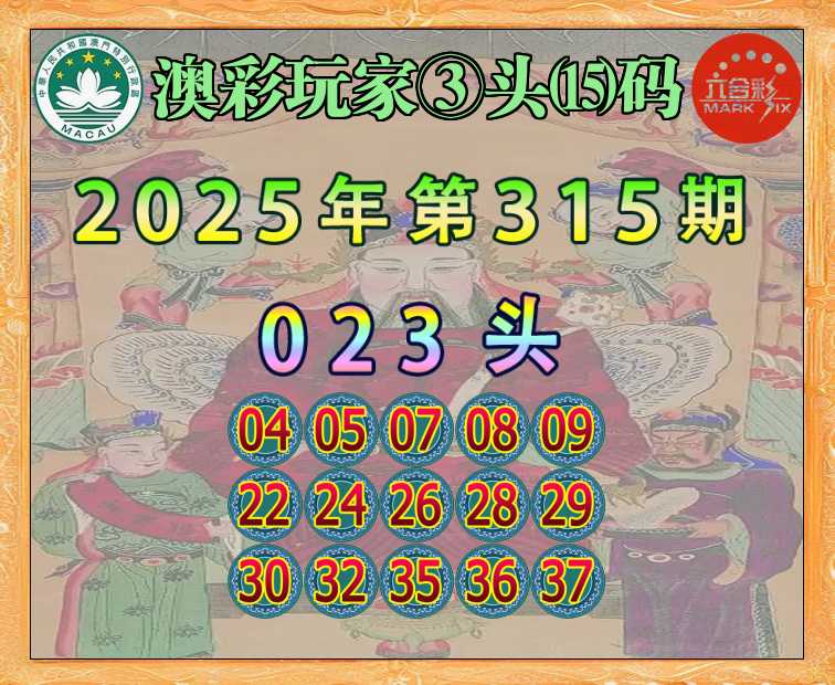 315期:〖澳彩玩家〗 ③头⒂码【023头】开:04准