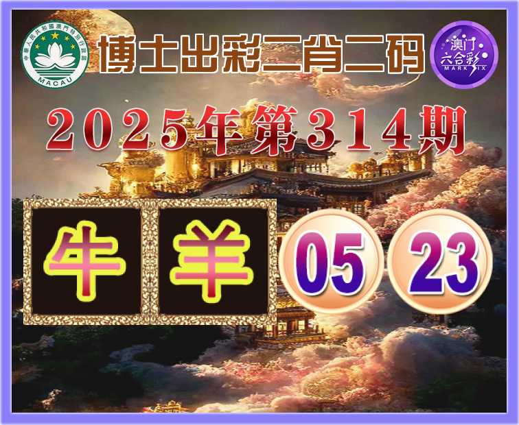 314期:【博士出彩】 二肖二码【牛羊】【05.23】开:羊23准