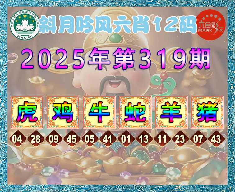 319期:『斜月吟风』 六肖12码【虎鸡牛蛇羊猪】开:鸡45准